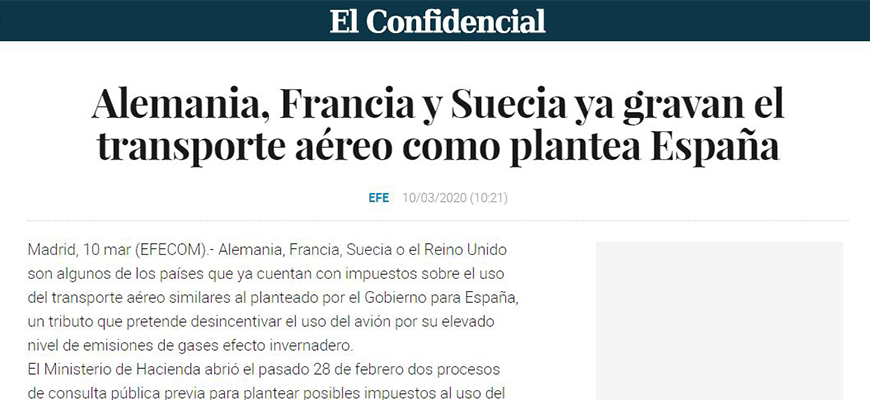 Alemania, Francia, Suecia o el Reino Unido son algunos de los países que ya cuentan con impuestos sobre el uso del transporte aéreo similares al planteado por el Gobierno para España, un tributo que pretende desincentivar el uso del avión por su elevado nivel de emisiones de gases efecto invernadero.