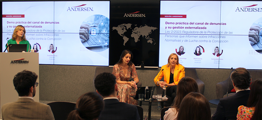 En este contexto, desde Andersen hemos organizado la jornada ‘Demo práctica del canal de denuncias y su gestión externalizada’, con el fin de dar respuesta a las principales dudas que puede suscitar esta nueva normativa, que debe implementarse tanto por las empresas del sector público como privado para evitar posibles sanciones.