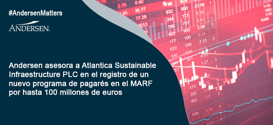 Andersen ha participado como asesor legal en el programa de pagarés de Atlantica Sustainable Infraestructure PLC, por un saldo vivo de 100 millones de euros. Banca March será la entidad coordinadora, y junto con Norbolsa, las entidades colocadoras.
