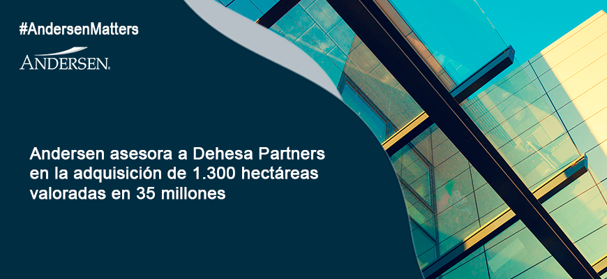Andersen ha asesorado legalmente a Dehesa Partners en la adquisición de más de 1.300 hectáreas de terreno en España destinados a proyectos de generación de energías renovables. La operación, valorada en más de 35 millones de euros, ha sido especialmente compleja, ya que ha implicado asesoría legal sobre más de 140 terrenos en seis provincias que se destinarán a proyectos de energía limpia a partir de 2025.
