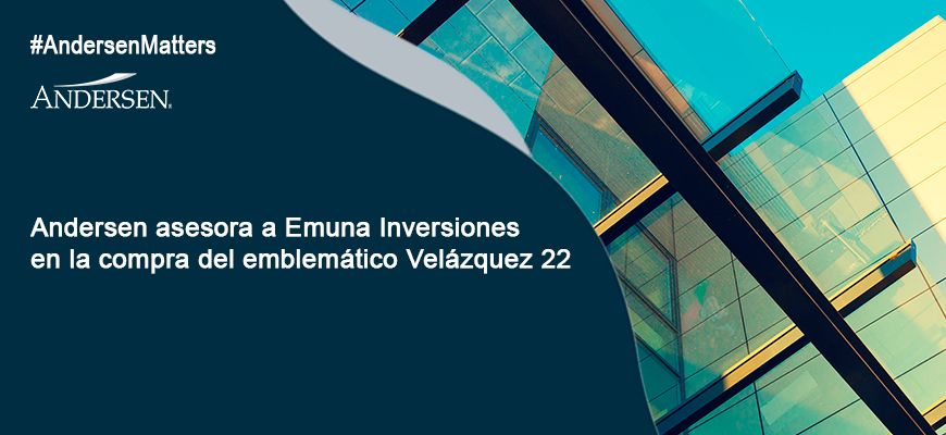 Andersen ha asesorado a Emuna Inversiones en la compra del emblemático edificio ubicado en la calle Velázquez número 22. La operación ha consistido en la adquisición de su parte del activo a la socimi Inbest GPF y del 34,5% del inmueble a un inversor privado argentino. La compra a Inbest GPF se ha articulado a través de la compra de la sociedad propietaria del 64,5% del inmueble.