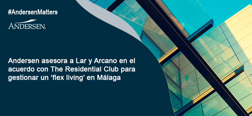 Andersen ha asesorado a Grupo Lar y al fondo de desarrollo urbano Impacto Andalucía, gestionado por Arcano, en el acuerdo alcanzado con The Residential Club (TRC), operador de activos en el segmento living en España, para la gestión de un innovador edificio de alojamiento flexible en Málaga TechPark.