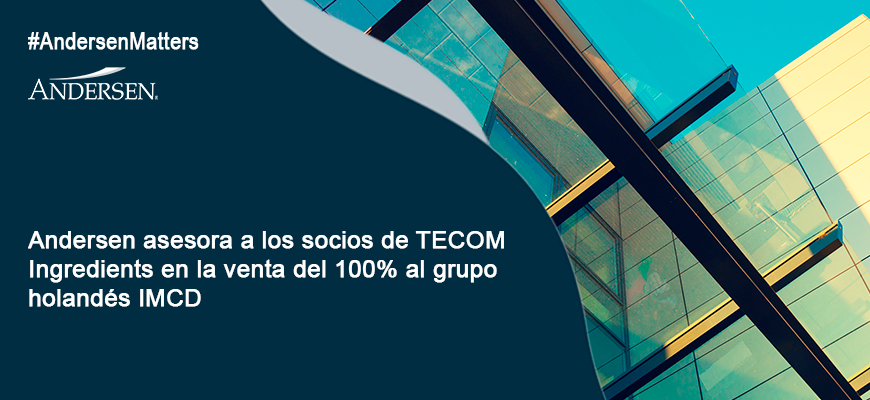 Andersen ha asesorado a los socios de TECOM Ingredients S.L., distribuidor de ingredientes y aditivos para la industria alimentaria ubicado en Molins de Rei (Barcelona), en la venta del 100% del capital social al grupo holandés IMCD N.V. Con esta operación, TECOM se convierte en una empresa líder en su sector e IMCD —compañía cotizada en Países Bajos y líder mundial en la distribución y formulación de especialidades químicas e ingredientes— consolida su posicionamiento en el mercado ibérico y amplía su porfolio de ingredientes.