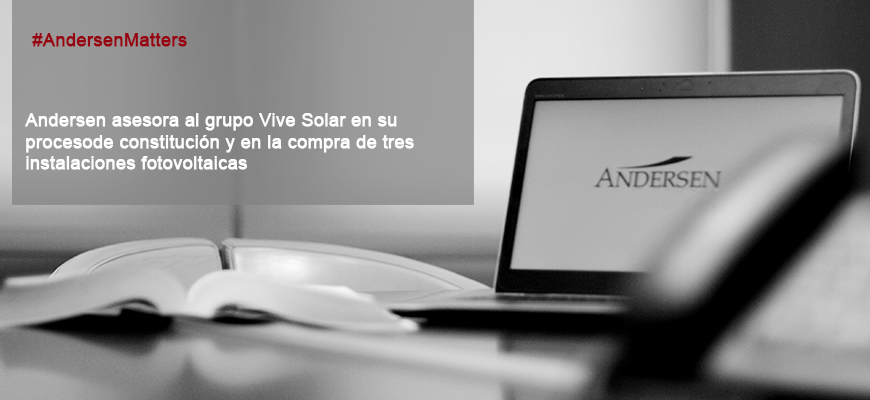 Andersen ha asesorado al grupo Vive Solar en su proceso de constitución (build-up), así como en la firma de tres acuerdos de codesarrollo para la promoción de instalaciones fotovoltaicas con las empresas energéticas Halia Distribution Management, S.L. y Cristugar, S.L. por un valor superior a los 30 millones de euros.