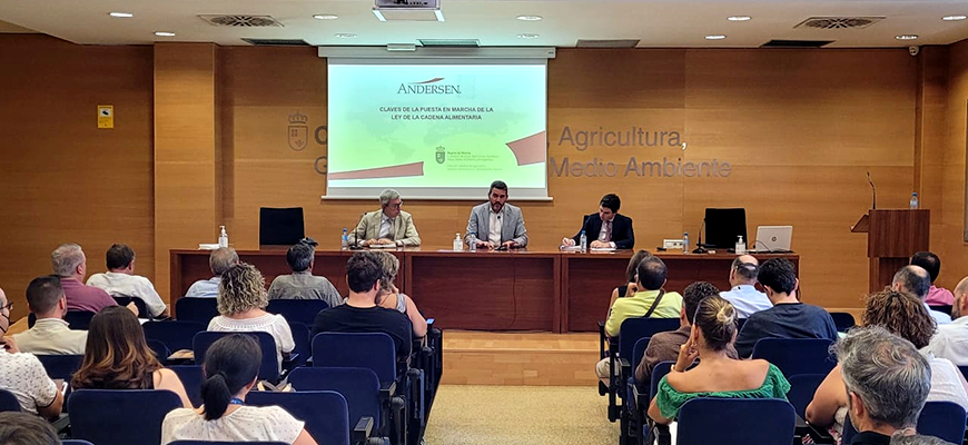 Andersen participó en la jornada sobre la Ley de la Cadena Alimentaria organizada en colaboración con la Consejería de Agua, Agricultura, Ganadería, Pesca, Medio Ambiente y Emergencias de la Región de Murcia para analizar los principales cambios normativos que plantea la reciente reforma de la Ley de la Cadena y su desarrollo en la Comunidad.