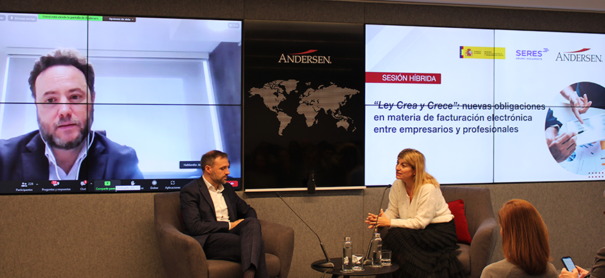 La Ley Crea y Crece potenciará el uso generalizado de la factura electrónica constituyéndola como un “elemento clave para la modernización y digitalización de la economía española”. Así se ha puesto de manifiesto en la jornada, que, con motivo de la aprobación de esta ley el pasado mes de septiembre, ha organizado Andersen, en colaboración con el Ministerio de Asuntos Económicos y Transformación Digital y SERES, para analizar las nuevas obligaciones en materia de facturación electrónica que introduce esta normativa.