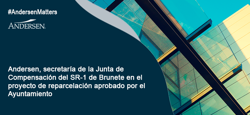 Andersen es la secretaría de la Junta de Compensación del SR-1 de Brunete en el proyecto de reparcelación Sector R1 “Primera Corona” del Plan General de Ordenación Urbana de Brunete (Madrid) que acaba de ser aprobado por el ayuntamiento de la localidad. Este desarrollo urbanístico contempla la urbanización de 755.863 m2 en Brunete, siendo la edificabilidad máxima de 279.669 m2 donde se construirán hasta 2.466 viviendas.