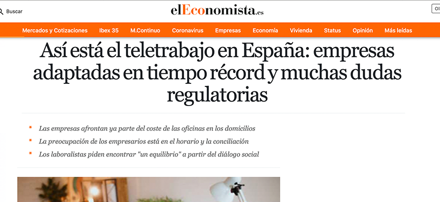 La irrupción del teletrabajo en el mercado laboral español ha supuesto un reto para las compañías, que se han adaptado en tiempo récord a esta nueva forma de organizar el trabajo.