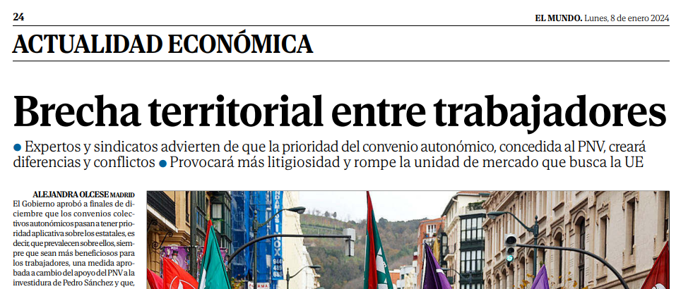 El Gobierno aprobó a finales de diciembre que los convenios colectivos autonómicos pasan a tener prioridad aplicativa sobre los estatales, es decir, que prevalecen sobre ellos, siempre que sean más beneficiosos para los trabajadores, una medida aprobada a cambio del apoyo del PNV a la investidura de Pedro Sánchez y que, según los expertos, agravará la brecha entre los trabajadores de unas comunidades y otras, y traerá «conflictividad e inseguridad jurídica».