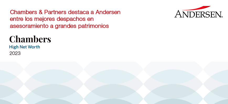 El directorio jurídico Chambers & Partners ha publicado la nueva edición de la guía 'High Net Worth' 2023, en la que ha vuelto a destacar a Andersen en la categoría de ‘Private Wealth’, que reconoce a los mejores despachos especializados en asesorar a grandes patrimonios.