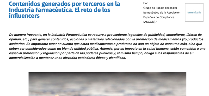 Por otra parte, los contenidos generados por terceros cobran una especial relevancia cuando nos referimos a “otras personas” distintas a los profesionales sanitarios, que puedan, por su notoriedad (nos referimos a los conocidos como influencers), incitar al consumo de un medicamento o a la utilización de un producto sanitario. Efectivamente, por su posicionamiento de visibilidad en la sociedad, pueden llegar a convertirse en creadores o transformadores de opiniones con repercusión directa o indirecta en el consumo o la conducta.