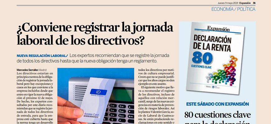 Los directivos estarían en principio exentos de la obligación de registrar la jornada laboral pero hay excepciones y casos en los que conviene a la empresa incluirlos desde que entre en vigor la nueva obligación el próximo 12 de mayo. De hecho, Alfredo Aspra, socio director de laboral de Andersen Tax & Legal en España, recomienda que se registre la jornada de todos los directivos de entrada, para que la empresa esté cubierta hasta que la norma tenga un desarrollo reglamentario.