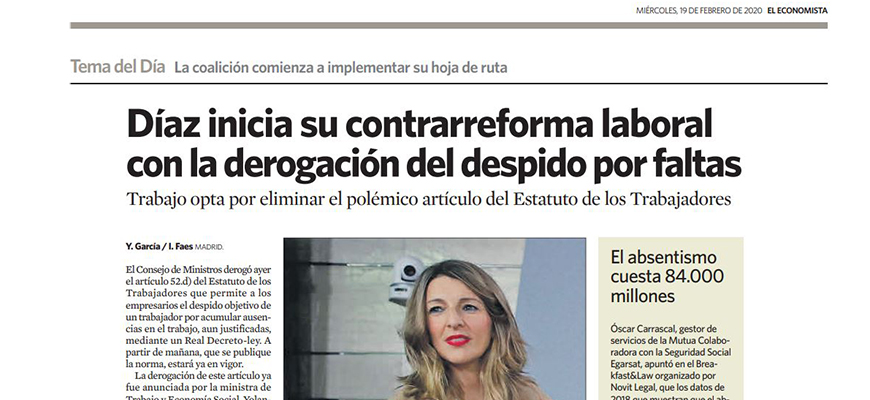 “Es preciso recordar que el despido por ausencias al trabajo no es nuevo. Dicha causa de extinción contractual llevaba contemplada en el Estatuto de los Trabajadores desde su primigenia versión de 1980. Es cierto que desde entonces ha sufrido cambios, pero la causa en sí, llevaba incorporada en nuestro ordenamiento jurídico desde hace mucho tiempo”, explica Alfredo Aspra, socio responsable del Área Laboral de Andersen Tax & Legal. Para este letrado no ha sido una figura eficaz, que apenas se utilizó por las empresas y “porque el absentismo sigue siendo uno de los principales escollos a superar por los ratios de productividad de las compañías”.