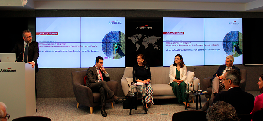 El evento ha contado con la participación de María Ángeles Benítez, directora de la Representación de la Comisión Europea en España, quien, hasta la asunción de esta responsabilidad el pasado 1 de abril de 2021, ha desarrollado su carrera en la Comisión Europea principalmente en la Dirección General de Agricultura y Desarrollo Rural, donde ocupó el cargo de directora general adjunta. En el encuentro también han participado María Canal Fontcuberta, Consejera Económica de la Representación de la Comisión Europea en España, José Vicente Morote, Socio Director de Andersen, José Miguel Soriano, Socio de Andersen y responsable del grupo agroalimentario del Despacho, y Rafael Ripoll, Of Counsel de la Firma.