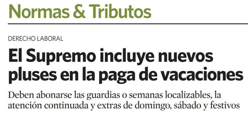 Alfredo Aspra, socio responsable del Departamento de Derecho Laboral de Andersen, explica que se trata de una magnífica ponencia del magistrado Ignacio Garcia-Perrote Escartín, que resume la doctrina del Tribunal de Justicia de la Unión Europea, analizando múltiples conceptos retributivos del convenio colectivo de empresa para su inclusión o exclusión en el pago de la retribución de las vacaciones.
