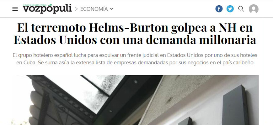 Nuevo pleito en Estados Unidos contra una empresa española bajo la polémica Ley Helms-Burton. Una familia ha demandado a NH Hotel Group por la gestión del hotel Capri en La Habana (Cuba). Su antecesor contaba con un derecho de explotación de este hotel durante veinte años (1957-1977), pero le fue expropiado por el Gobierno de Fidel Castro antes de que venciese. Después la gestión fue cedida al grupo liderado por Ramón Aragonés, al que ahora sus descendientes reclaman una indemnización millonaria, según figura en la demanda a la que ha tenido acceso Vozpópuli, que también desvela que la hotelera ha fiado su defensa a Bird & Bird y Bracewell LLP.