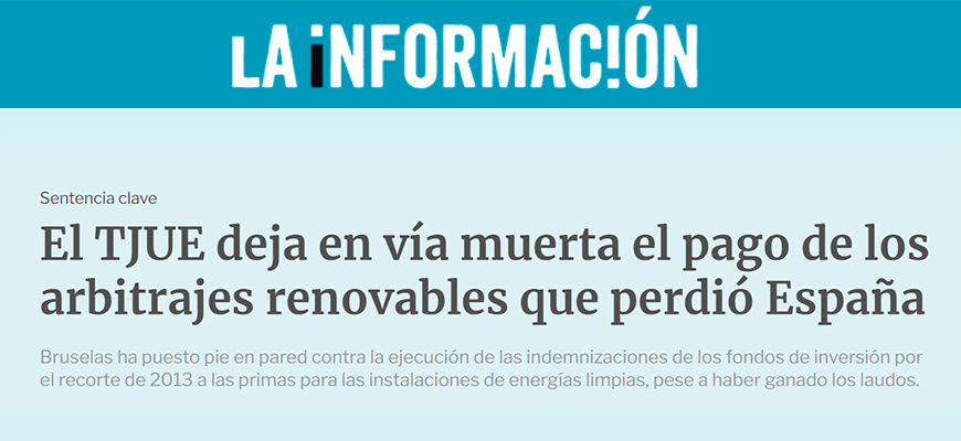Para entender el impacto del reciente fallo del TJUE en la oleada de litigios hay que atender al punto 60 de la 'sentencia Komstroy'. "La cuestión es que en controversias entre Estado miembro e inversor de estado miembro, el hecho de la existencia de tratados internacionales de arbitraje no supone, en modo alguno, que se deje de aplicar el derecho comunitario", reza el texto. Este apunte refuerza la posición de España para lograr que la ejecución del conjunto de arbitrajes perdidos contra inversores comunitarios quede, por ahora, paralizada.