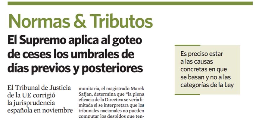 The Supreme Court has issued a ruling, dated 9th December 2020, in which it reviews the trickle of possible dismissals in the 90 days before and after the date of dismissal of an employee to check whether it is a disguised collective dismissal, as stipulated in Article 51.1 of the Workers' Statute.