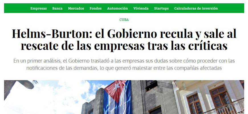 Spanish companies breathe easy at Helms-Burton's expense. At least for now. The government has conveyed that the European Union's Blocking Statute allows notifications sent from American courts based on Helms-Burton to be blocked to companies and their legal advisors.