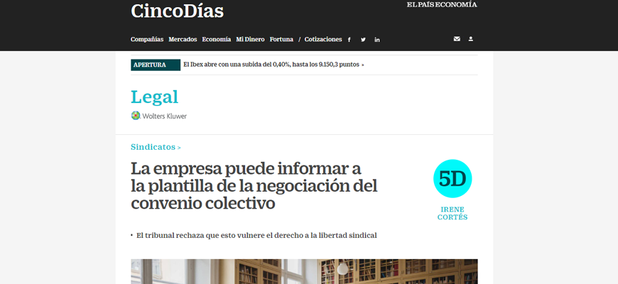 For Alfredo Aspra, labour partner of Andersen Tax & Legal, this is a very relevant resolution since it clarifies that the company will be able to inform its staff about the collective bargaining agreement agreements "as long as it acts in a direct, transparent manner".