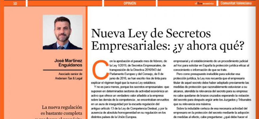 El Economista | With the approval of Law 1/2019 last February, on Business Secrets, transposing Directive 2016/943 of the European Parliament and of the Council, of 8 June 2016, volumes have been written to explain the legal regime that the new Law establishes.