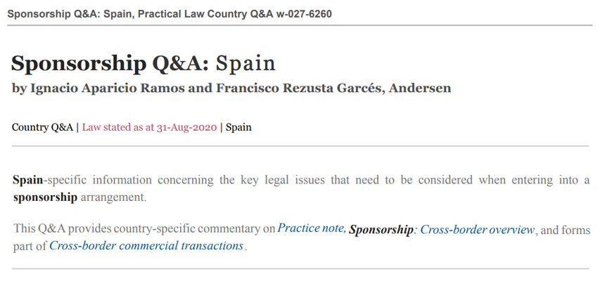 Practical Law Country Q&A: Key legal issues on Sponsorship in Spain