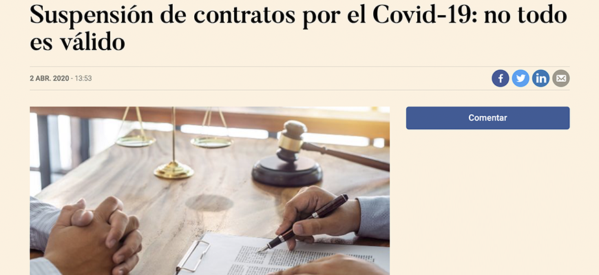 In recent days and hours, and even more so after the publication of Royal Decree 423/2020 on 14th March, which declared the state of alert throughout Spain, it is impossible to talk about anything other than the so-called "COVID-19"; about known cases, the measures adopted, the recommendations of the health authorities, the impact on the economy and it is in this context that many legal questions arise regarding what consequences this virus will have on the contracts signed and the obligations we have acquired by virtue of them.