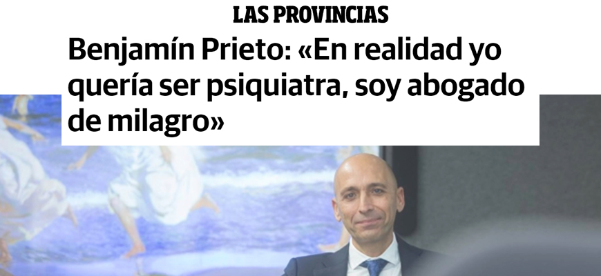 Los pasos de Benjamín Prieto quedan amortiguados por la moqueta que cubre el suelo de las oficinas de Andersen en Valencia, un lugar donde reina el silencio entre cristales translúcidos y pasillos luminosos, donde todo es blanco y se quiere transmitir sensación de profesionalidad, pero también de bienestar. Es curioso que los despachos de abogados sean cada vez más unos lugares donde reina la calma, donde se utilizan los espacios de una forma subliminal; quien tiene problemas legales necesita esa paz que ya comienza dándole el entorno, donde además nada está fuera de lugar. También en Benjamín Prieto, delegado de Andersen en Valencia y uno de los abogados más brillantes de la ciudad, todo está en orden, desde su forma de vestir hasta sus palabras, que transmiten seguridad y a la vez una empatía que -dicen- es marca de la casa.