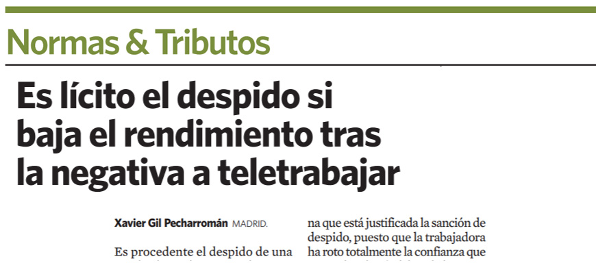 Alfredo Aspra, socio del Área Laboral de Andersen, razona que está justificada la sanción de despido, puesto que la trabajadora ha roto totalmente la confianza que rige toda relación laboral, disminuyendo de forma voluntaria, continuada, grave y culpable su rendimiento de trabajo, sin que se pueda aplicar una graduación, porque su comportamiento es reiterado y continuado en el tiempo.