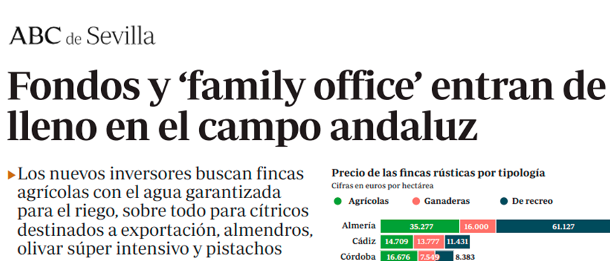 Ignacio Aparicio Ramos, Executive Partner en el área de Mercantil y M&A y miembro del grupo agroalimentario de Andersen, analiza la entrada de fondos y ‘family office’ en el campo andaluz en el periódico ABC de Sevilla.