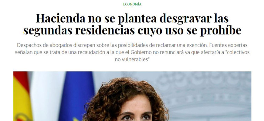 El ministerio de Hacienda de María Jesús Montero no se plantea implementar medidas relativas a relajar la tributación exigida a propietarios por aquellas segundas residencias cuyo uso está ahora prohibido en el marco del confinamiento general, según señalan fuentes ministeriales a Vozpópuli.