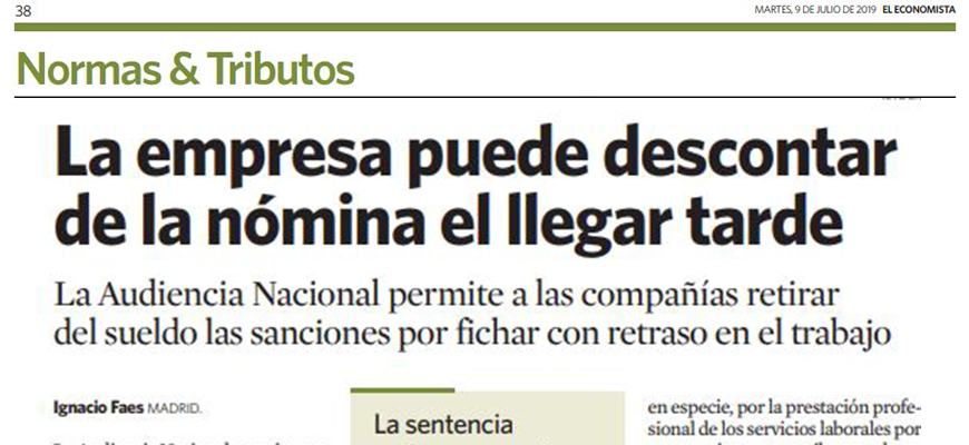 La Audiencia Nacional permite que las empresas con registro horario puedan descontar de la nómina las sanciones por llegar tarde al trabajo. El fallo, de 20 de junio de 2019 y hecho público este lunes, rechaza que esta medida suponga una doble sanción. De esta forma, el alto tribunal desestima una demanda que el sindicato CGT interpuso contra Atento.