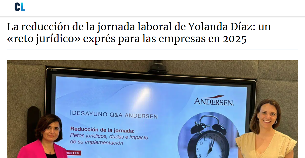 Raquel de la Viña y Clara Marín Hernández, directoras en el área de Laboral de Andersen, explican los principales retos jurídicos que implica la implantación de la reducción de la jornada laboral en las empresas en la noticia publicada en Confilegal.