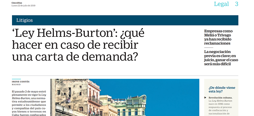 Otro factor relevante a evaluar son los intereses de la compañía en Estados Unidos. Aunque la UE prohíbe reconocer la validez de sentencias en base a la Ley Helms-Burton, una sentencia condenatoria en EE UU “afectará en gran medida al que tenga negocios en el país”, indica Aparicio, ya que se verá envuelto en el riesgo de incautación de bienes o bloqueo de cuentas para hacer frente a la cantidad reclamada.
