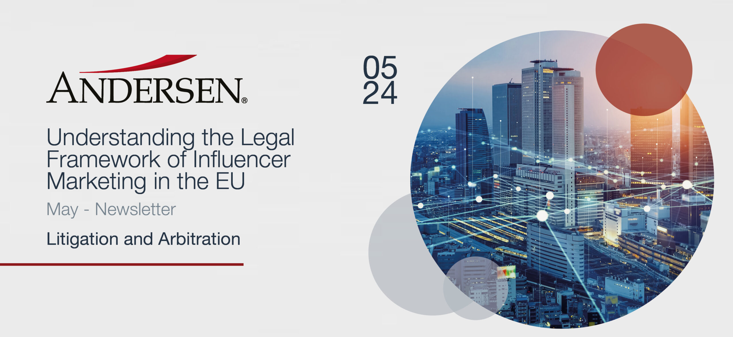 La práctica europea de Proecesal y Arbitraje de Andersen presenta su boletín de mayo 2024: 'Understanding the Legal Framework of Influencer Marketing in the EU'.