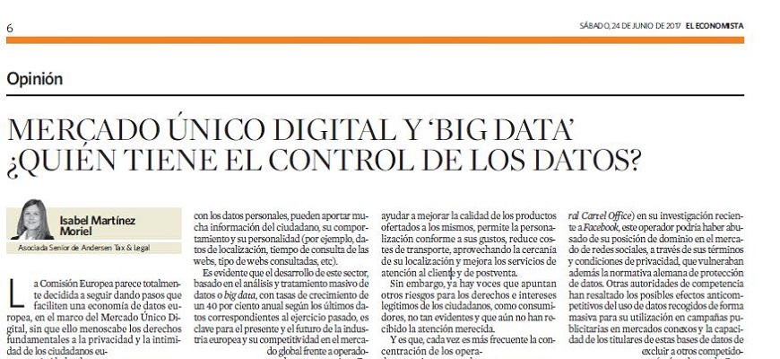 La Comisión Europea parece totalmente decidida a seguir dando pasos que faciliten una economía de datos europea, en el marco del Mercado Único Digital, sin que ello menoscabe los derechos fundamentales a la privacidad y la intimidad de los ciudadanos europeos. Así lo ha demostrado con la adopción del Reglamento EU General de Protección de Datos (que entra en vigor en mayo del año que viene) y la propuesta de la nueva Directiva de Comercio Electrónico y Privacidad, cuya aprobación se espera este año, y que supone un refuerzo de los derechos del ciudadano al exigir el consentimiento previo incluso para el tratamiento de los datos generados automáticamente por los dispositivos electrónicos.