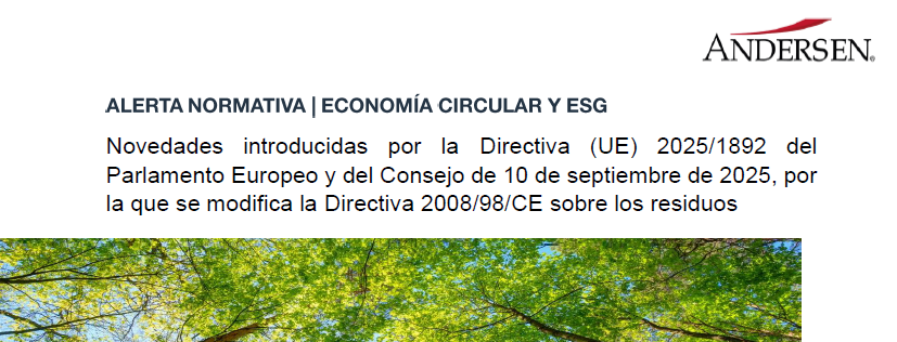 Hoy 26 de septiembre de 2025 se ha publicado en el Diario Oficial de la Unión Europea (DOUE) la Directiva (UE) 2025/1892 del Parlamento Europeo y del Consejo de 10 de septiembre de 2025, por la que se modifica la Directiva 2008/98/CE sobre los residuos.