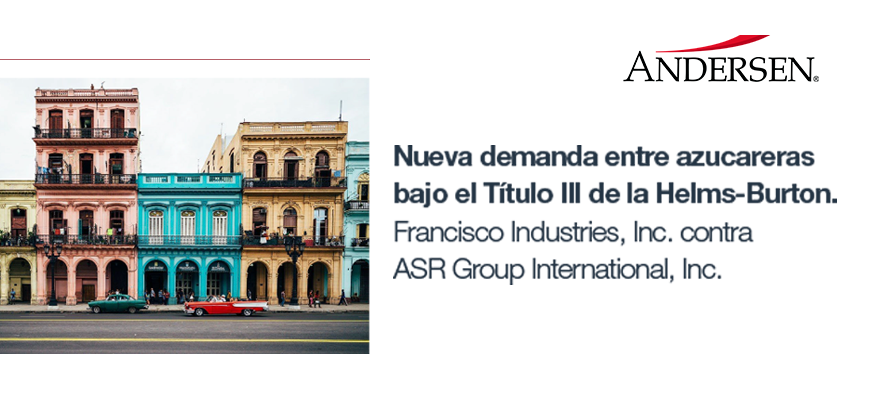 El pasado 2 de mayo, Francisco Industries, Inc., presentó una demanda contra ASR Group International, Inc. -ambas compañías azucareras-, con base al Título III de la Ley Helms Burton (LHB), ante al Tribunal del Distrito Sur de Florida, División de Fort Pierce.