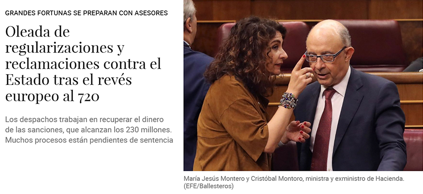 Hacienda se ha llevado un duro revés en Luxemburgo con el 720, ideado hace una década por el Ministerio dirigido entonces por Cristóbal Montoro. Y las consecuencias son millonarias, ya que los patrimonios afectados, la mayoría grandes, esperan ganar los procesos abiertos en la Justicia, y para los que están cerrados, preparan reclamaciones patrimoniales contra el Estado. Los despachos también esperan un aluvión de regularizaciones de activos que aún se encuentran en el exterior sin declarar.