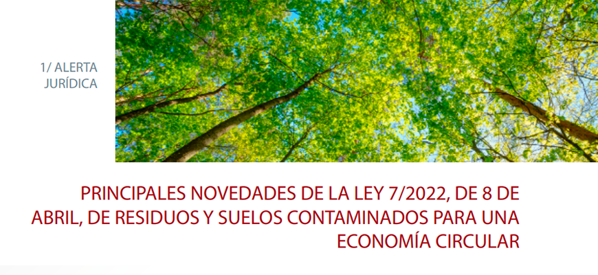 La Ley 7/2022, de 8 de abril, de residuos y suelos contaminados para una economía circular (“Ley 7/2022”) transpone al ordenamiento jurídico español distintas directivas comunitarias y su fin es el impulso de la economía circular. A tal efecto, en el presente documento se realiza un análisis sistemático de la norma en el que se abordan de forma esquemática sus principales novedades.