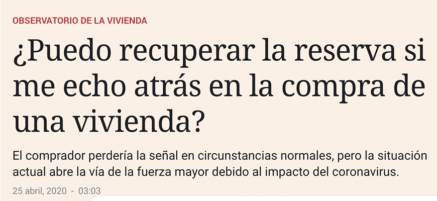 Antonio Ñudi, socio de Andersen Tax & Legal, explica que “con carácter general” el comprador no recuperará la señal, “salvo que el propio contrato prevea expresamente alguna causa de resolución que pueda encuadrarse en esta situación, cosa muy poco habitual”.