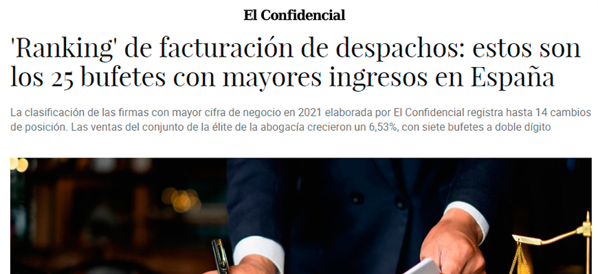 El sector legal creció con fuerza en 2021 tras las dudas y la incertidumbre experimentadas durante el ejercicio del covid. Así lo refleja el 'ranking' de facturación de los 25 despachos con mayores ingresos en España el pasado ejercicio, clasificación elaborada por El Confidencial y de la que hoy se publica un avance. El informe completo, con el conjunto de las cifras de negocio de los bufetes y las entrevistas a los socios directores de las firmas que conforman el 'top 25' de la abogacía de los negocios, verá la luz la semana que viene.